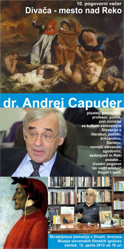 Pogovorni večeri Divača – mesto nad Reko zaključujejo svojo prvo dekado z gostom dr. Andrejem Capudrom, književnikom, prevajalcem, publicistom, profesorjem romanistike, prvim ministrom za kulturo v samostojni Sloveniji ter nekdanjim veleposlanikom v Parizu in Rimu, ki je bil leta 2010 skupaj s slovenskim metropolitom dr. Antonom Stresom izvoljen tudi za člana Evropske akademije znanosti in umetnosti.