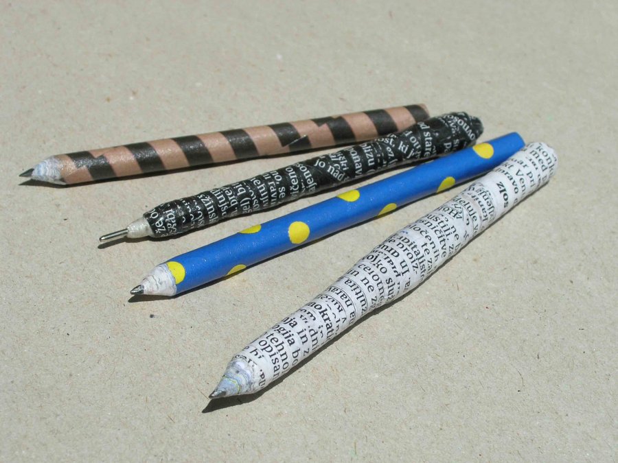 Na septembrski delavnici bomo stare filmske revije in časopise spreminjali v nove svinčnike in kulije. Da pa jih bomo imeli kam shraniti, bomo iz odsluženih vrečk in plastičnih map s pomočjo barvnih izolirnih trakov naredili še unikatne peresnice.