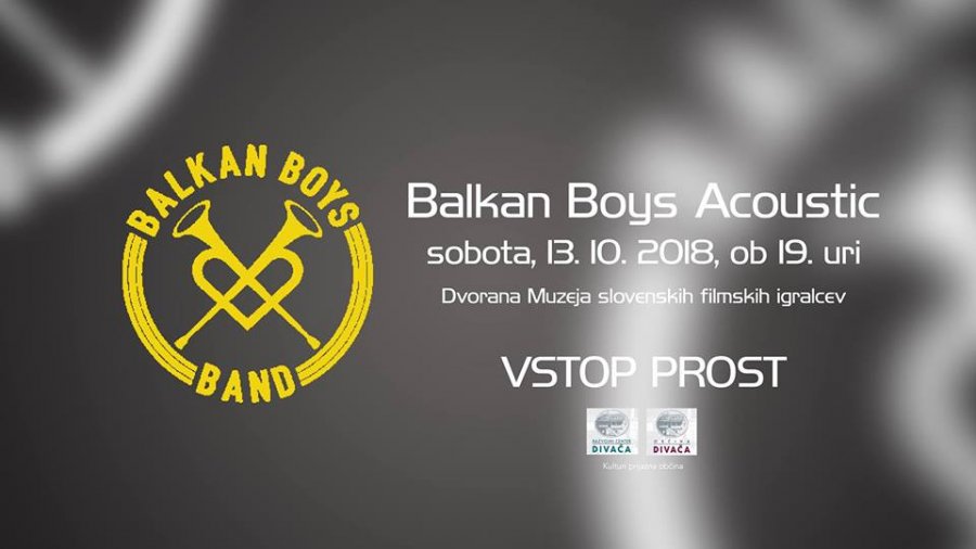 Balkan boys se bodo v prijetnem ambientu tokrat predstavili z akustičnimi izvedbami. Skladbe, prirejene posebej za to priložnost, bodo zazvenele v dvorani Muzeja slovenskih filmskih igralcev v Divači, kraju, kjer so Balkan boys začeli svoje ustvarjanje.