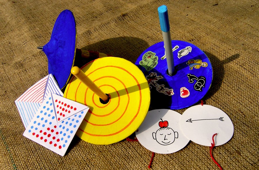 Na marčevski delavnici se bomo najprej spoznali z optičnimi napravami in igračami, ki so zaposlovale oči željne premikajočih podob pred izumom kamere in filma na koncu 19. stoletja. Nato pa bomo izdelali vrtavke različnih vrst in oblik, jih porisali in opremili s filmskimi podobami ter jih pognali v gibanje.